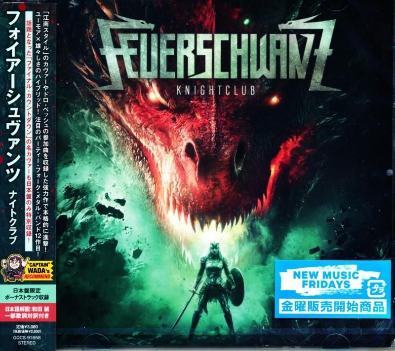 『Knightclub』と題された本作。すでに騎士のナイトと夜のナイトを引っ掛けたユーモア過ぎるアルバム・タイトル通りにフォーク・メタルの域を完全に超えたノリノリの楽曲が満載となっており、酒場のノリを具現化したまさに酒場メタルなノリノリのダンスチューンから、彼ららしいユーモアとメロディセンスの光るパワー・メタル寄りの雄々しいフォーク・メタルまで、盛り上がる為に生み出された激熱のナンバーがズラリ。挙句の果てに、日本を席巻した元祖盛り上がりK-popナンバー「カンナム・スタイル」もまさかのハイテンションでカヴァーし収録!フォイアーワールドここに極まれりといったところだ。加えて、そのユーモアさとは裏腹にドイツの重鎮女性シンガー“ドロ・ペッシュ”もゲスト・ヴォーカルで参加するなどジャーマン・メタル・シーンに本格的に認知されてきており、注目の高さが伺える。ジャーマン・メタルの大家、和田“キャプテン”誠(フォイアーシュヴァンツ応援隊長)の推薦盤である本作には、和田誠のイベントやラジオでオンエアーされ、日本のHR/HMファンから愛されるきっかけとなった「ファイナル・カウントダウン」の名カヴァーを特別に収録!ドイツから日本へ愛すべき彼らが遂に本格的に進撃開始!全国のHR/HMファンを笑劇、いや衝撃の渦に巻き込む日がやってきたのだ!