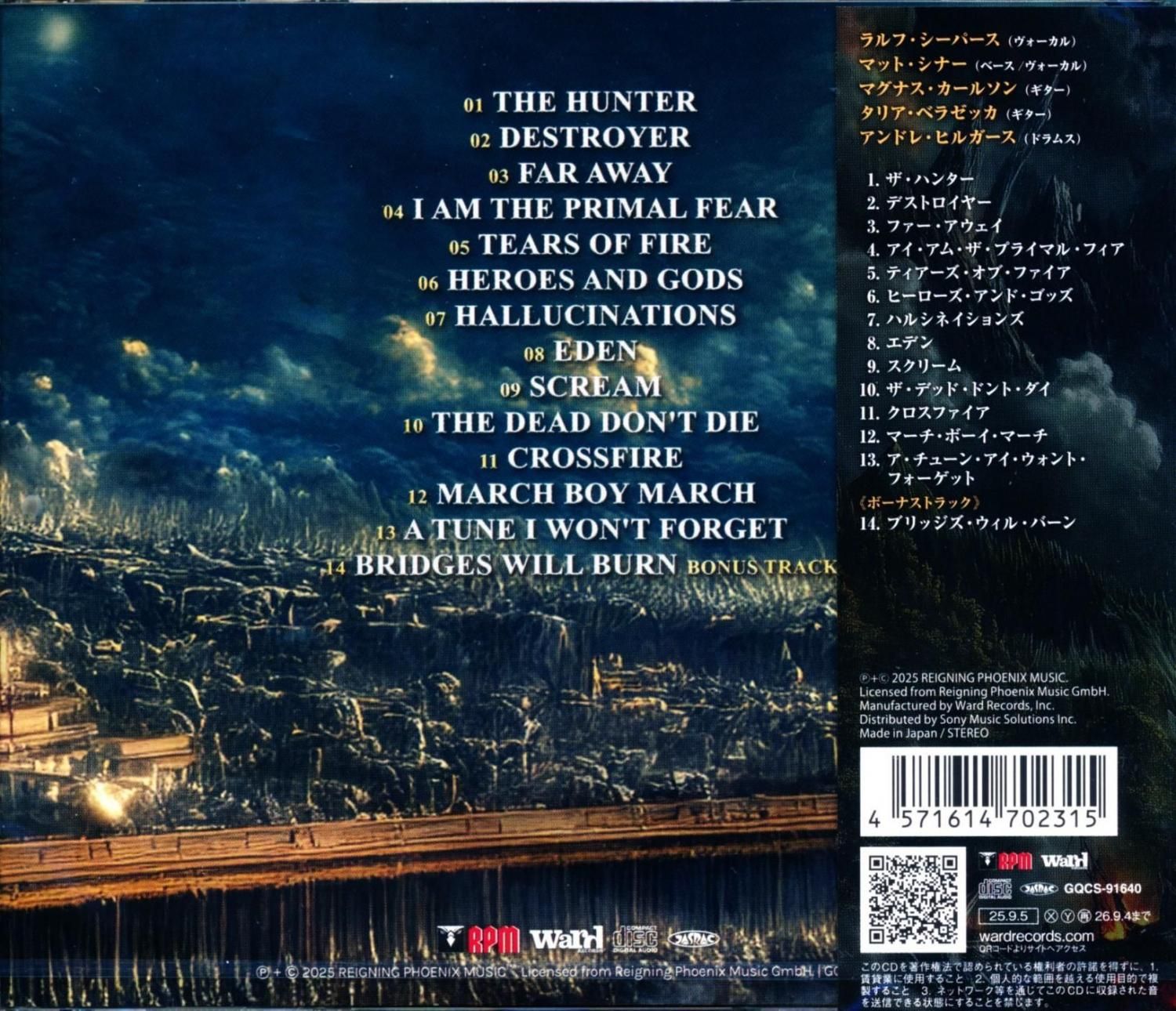 97年から四半世紀以上にわたり、ピュアなヘヴィメタルを武器にジャーマン・メタル・シーンをリードしてきたPrimal Fear。もともとはGamma Rayを脱退したラルフ・シーパース(Vo)が、マット・シナー(B)、トム・ナウマン(G)、クラウス・シュペルリンク(Dr)という、Sinnerの面々らと結成したバンドである。四半世紀にわたり、これ以上ないピュアなヘヴィメタルを武器として、ドイツのシーンをリード。97年のバンド名を冠したデビュー作以降、数年ごとに止まることなくアルバムをリリースしてきた彼らだが、24年に激震に襲われる。主要メンバーの1人、トム・ナウマンを含む3人が脱退したのだ。だが、そんなことで立ち止まる彼らではない。Angus McSixやFrozen Crownを渡り歩いた女性ギタリストThalìa Bellazeccaらを新メンバーに加え、早くもニュー・アルバムをリリースする。