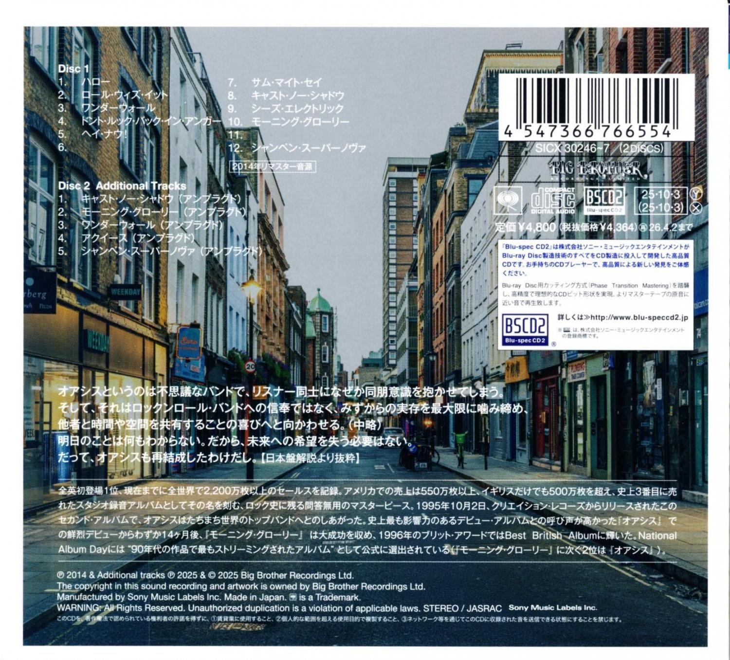 『モーニング・グローリー』 はロック史に燦然と輝く、“時代を変えた” 名盤の1枚。1995年10月2日にリリースされたこのセカンド・アルバムで、オアシスはたちまち世界のトップバンドへとのしあがった。 史上最も影響力のあるデビューALとの呼び声高かった 『オアシス』 での鮮烈デビューからわずか14ヶ月後、『モーニング・グローリー』 は大成功を収め、1996年のブリット・アワードではBest British Albumに輝いた。その後も世界各国でチャートの1位を獲得し、現在までに全世界で驚異の2,200万枚以上のセールスを記録。アメリカでのセールスは550万枚超、イギリスでは史上3番目に売れたスタジオ録音アルバムとしてその名を刻んでいる。National Album Dayには “90年代の作品で最もストリーミングされたアルバム” として公式に選出された。なお、本作収録の 「Wonderwall」は、2020年10月に<1990年代にリリースされた曲の中でSpotifyにて10億回再生を初めて突破した楽曲>と認定された。 本DXエディションには、5曲の新たなアンプラグドVer.が追加収録される。