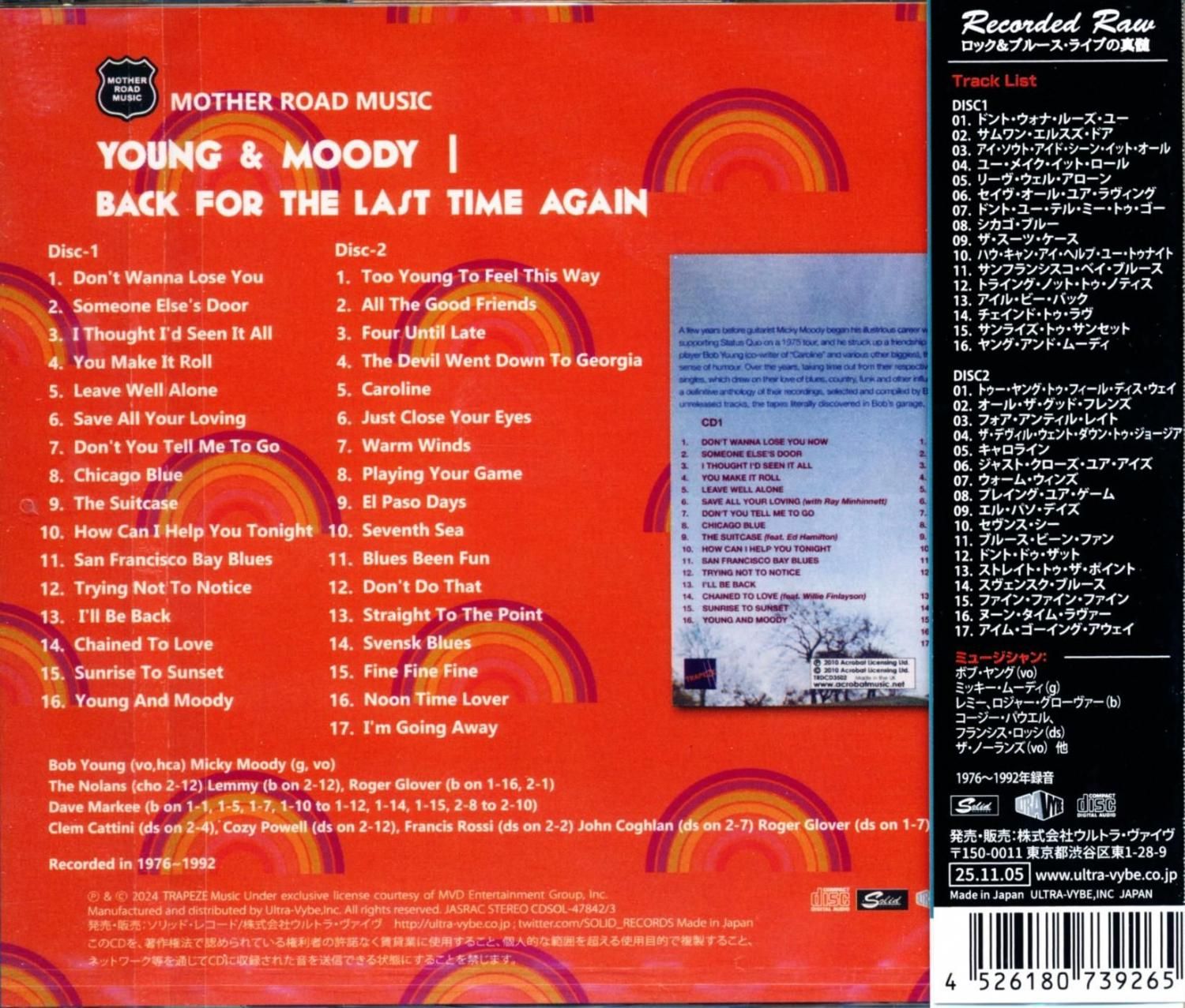 ステイタス・クォーの作詞家ボブ・ヤングとホワイトスネイクのギタリストだったミッキー・ムーディによるブルース・ロック・バンド「ヤング&ムーディ」の再結成盤。結成は1977年だが多忙により4年ほどの活動期間で解散してしまったが2000年代に入り再結成、ディープ・パープルのロジャー・グローヴァーやコージー・パウエル、ノーランズも参加したUKロックの真髄!