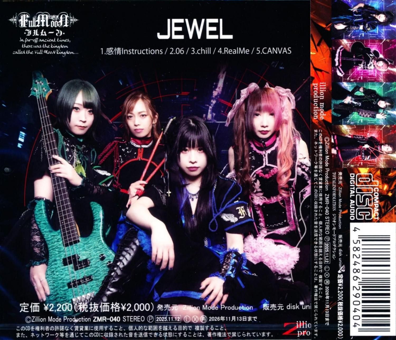 ガールズロックバンドFullMooN完全新作EPリリース。「JEWEL」と名付けられた今作は各メンバーが作曲を担当し宝石箱の様に多彩な色を持つ楽曲が収録されている。メロディアスながらも力強いロックサウンドが更なる進化を遂げた最新作。